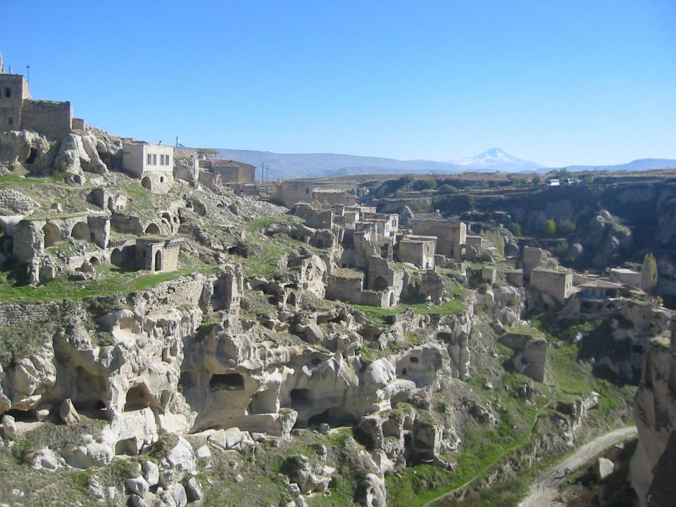 house ruins in Ortahisar - in the background Mount Erciyes