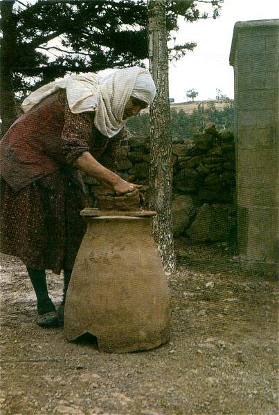 Dibek: | adı verilen bir tahta altlığı yüksek tutmaya yarayan, kilden yapılmış gereç |
