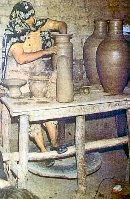 110 Akköy'de kırk yıldır bu işle uğraştığını söyleyen Hatice Kara; küpün seltir kısmını çekmiş güdür kısmını çekiyor. |