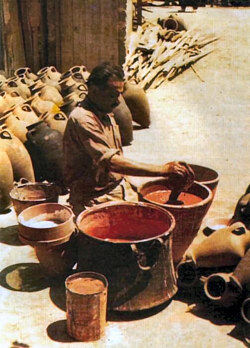 Kullanılan çamur, üç ölçü kırmızı kille bir ölçü kumun karışımından oluşmakta, 100 adet cer yapılabilecek çamur miktarına 10 kg. tuz ilâve edilmektedir.