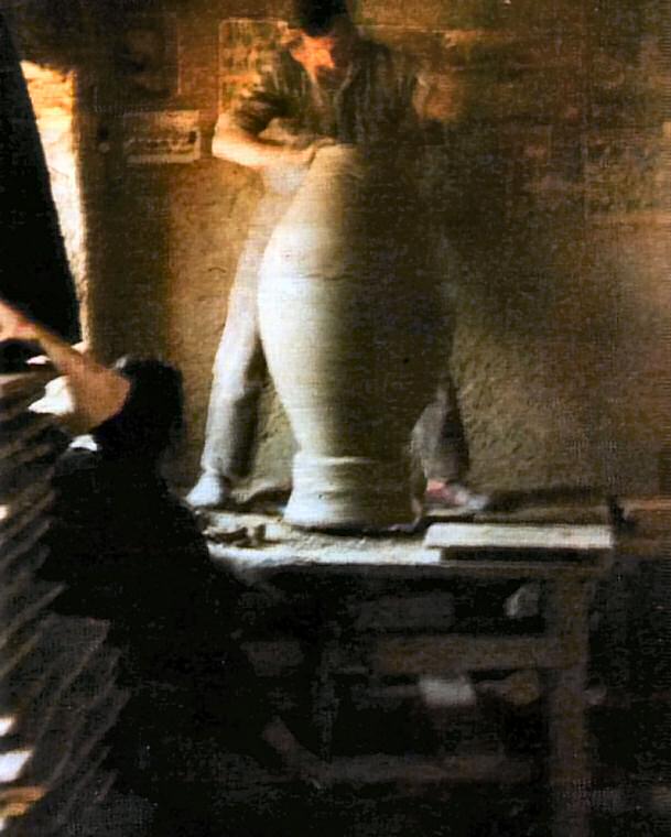 Büyük küpler üç ayrı işlemden geçirilerek yapılmaktadır. Yandaki çizimde de izlenebileceği gibi, ulak ve dobay adı verilen kısımlar, çarkta çekilerek biçimlendirildikten sonra bir gün bekletilmekte ve birbirlerine eklenerek ertesi gün küpün kup kısmı bant usulüyle tamamlanmaktadır. Böylece bir küpün yapımının üç gün sürmesine karşın günde ortalama 160-180 küp çıkarılabilmektedir.